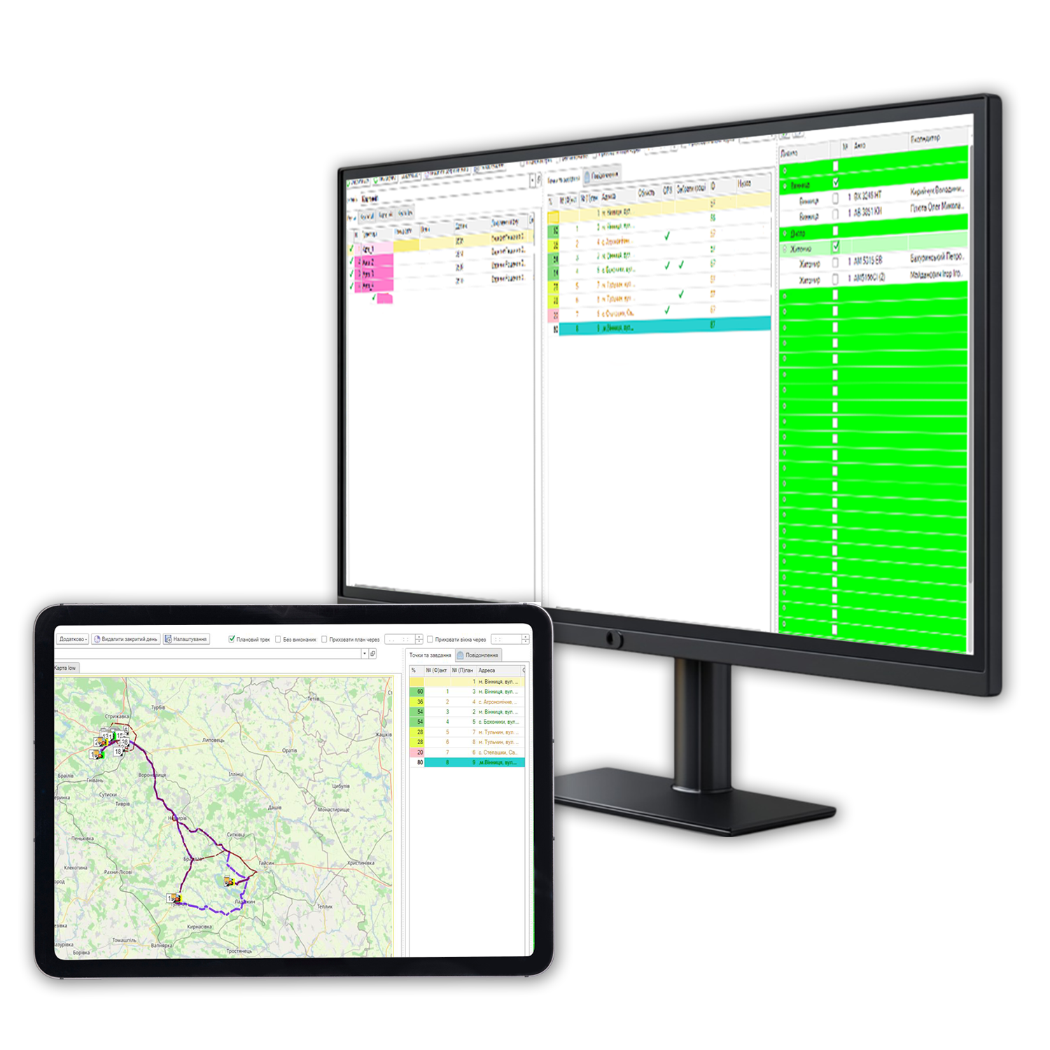 Встановлення GPS трекерів і мобільних додатків дозволяє відстежувати виконання маршрутів в онлайн-режимі. Це включає контроль за запізненнями, відхиленнями від маршруту, зайвими поворотами, простоями і додатковим пробігом.