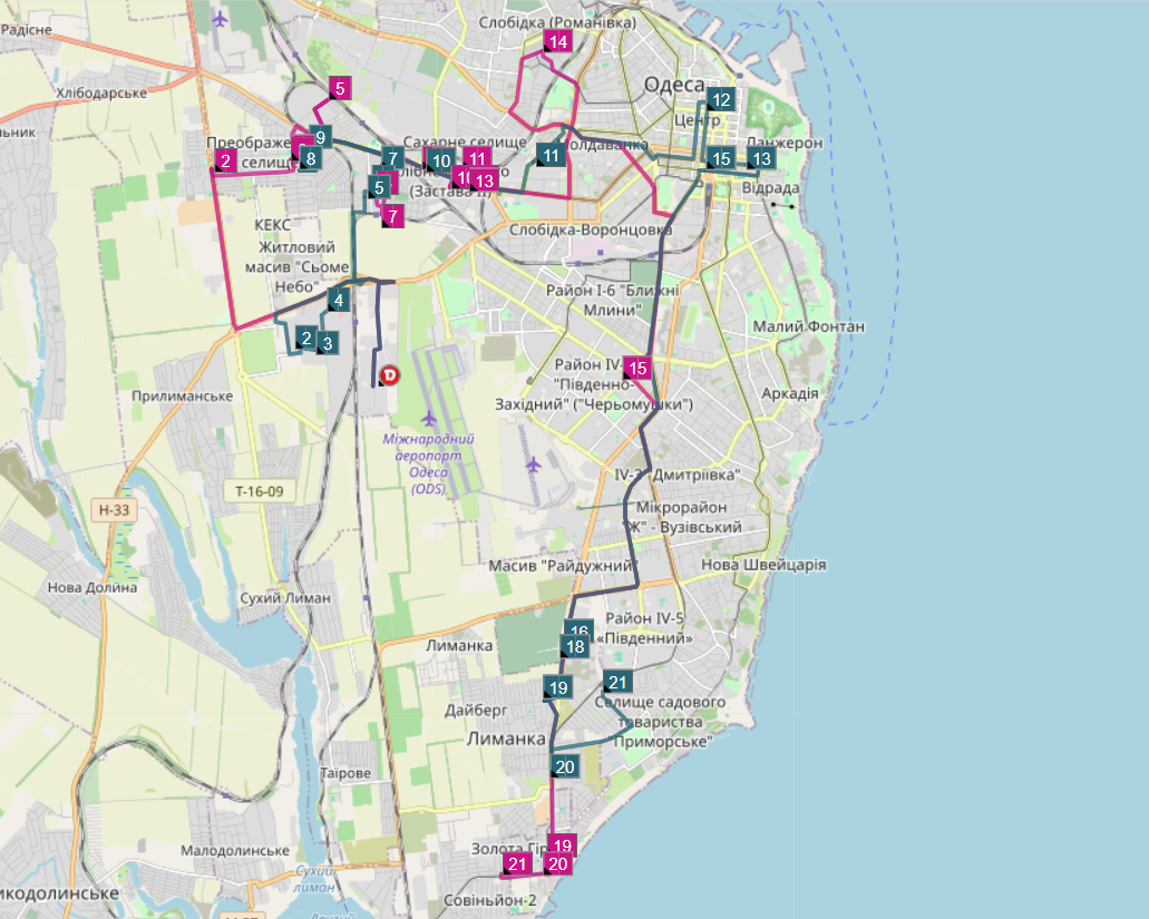 Система самостійно формує оптимальні маршрути, враховуючи понад 15 типів обмежень. Обробка тисяч заявок займає всього кілька хвилин.